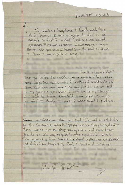 “Para ti, ser vista con un hombre negro no pondría en peligro de ninguna manera tu carrera, te haría parecer mucho más abierta“, escribió nuestro eterno Tupac en una carta cuando estaba en prisión.”Pero para mí, al menos en mi percepción anterior del tema, siento que me debo a mi ‘imagen’, y estaría decepcionando a la mitad de la gente que me hizo lo que yo pensaba que era“, confesó el intérprete de All Eyez On Me