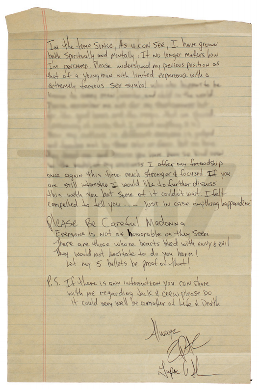 En estas imágenes publicadas por TMZ, Tupac claramente sabe que decepcionó a Madonna por su rechazo, diciendo cosas como: “Nunca quise hacerte daño” o “Tengo que disculparme contigo, como tú dijiste, nunca fui capaz de ser el amigo que debí haber sido“.