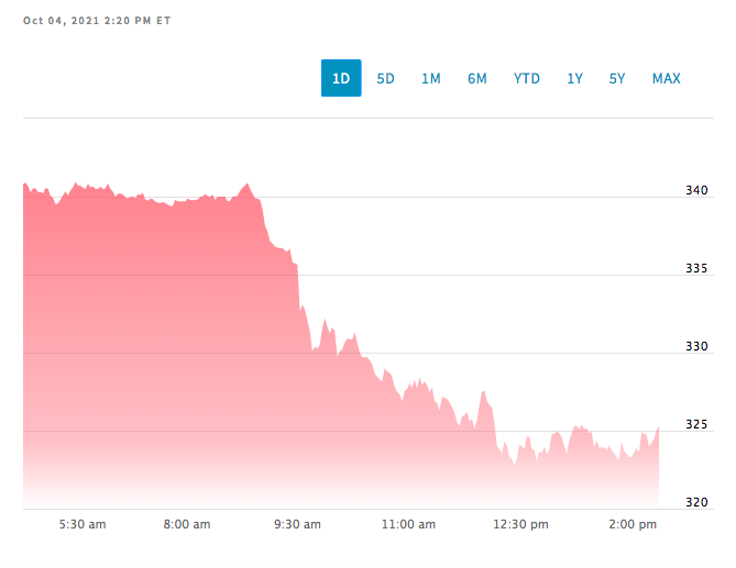El descenso en picada de las acciones de Facebook Inc. comenzó este lunes a las 08:50 de la mañana y sigue hacia abajo hasta la publicación de esta nota.
