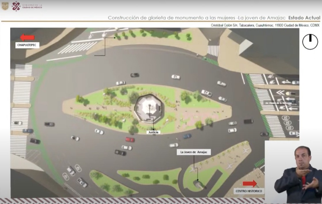 De hecho, mostró una imagen del proyecto, en la cual se puede ver que la figura de la mujer indígena se colocará a un costado de la Glorieta de las mujeres que luchan. Además, aseguró que se tomó esta decisión para evitar cualquier confrontación con las activistas.