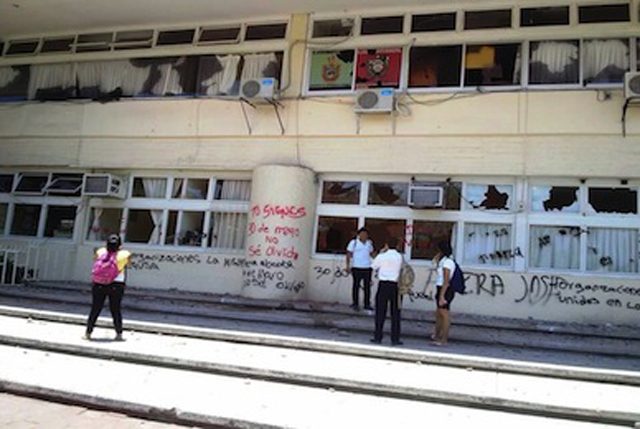 Después de encontrar los tres cuerpos cientos de integrantes de la organización Unidad Popular realizaron destrozos en el palacio municipal para demandar el esclarecimiento de los crímenes.