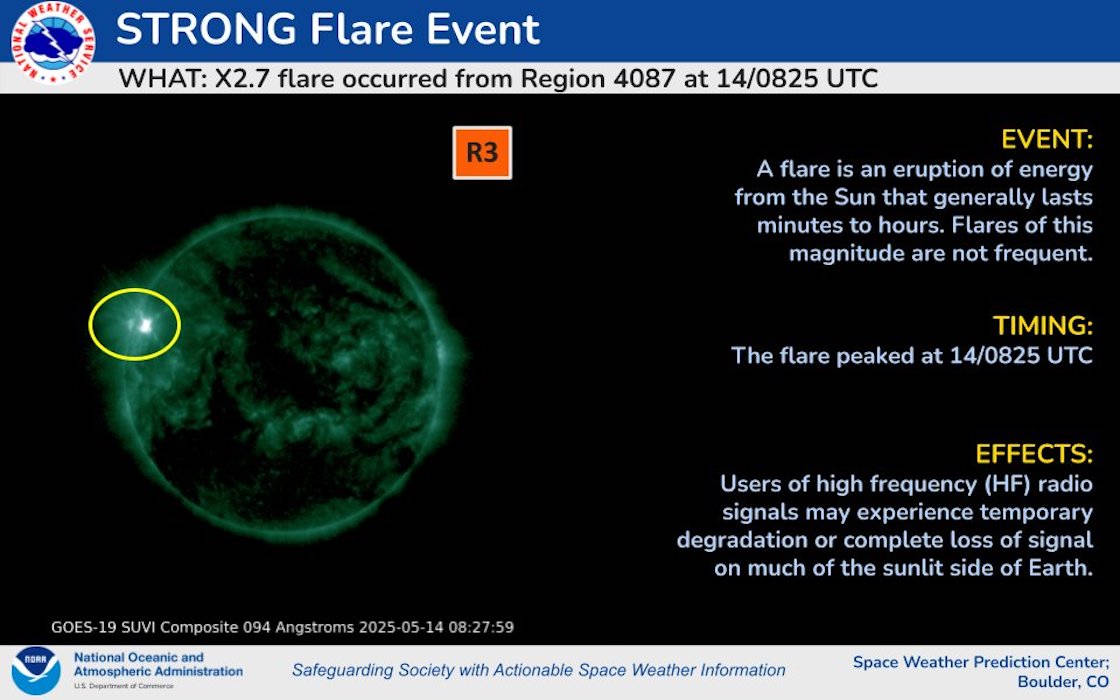 Si, de acuerdo con los expertos de Estados Unidos, la erupción solar más fuerte se registró el pasado miércoles 14 de mayo de 2025, ya que se clasificó como X2.7.