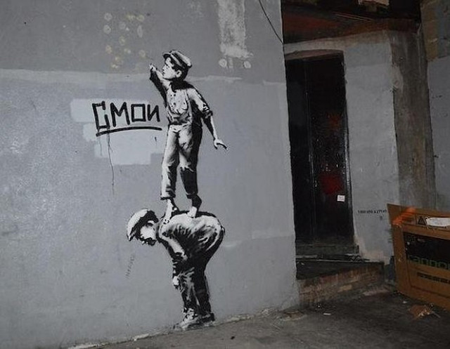 Pintar los graffitis callejeros es una forma de restablecer el orden ante un acto de vandalismo. ¿Pero aplica lo mismo a un graffiti de Banksy?, ¿instituye su autoridad un nuevo orden automáticamente?, y si esto es así, ¿cómo podría seguir poniendo en jaque al mundo del arte alguien que ya ha sido instituido y absorbido como regla de medir, como medida del orden?, ¿son esta preguntas tan posmodernas e insignificantes como los mensajes de Banksy en sus fichas telefónicas?