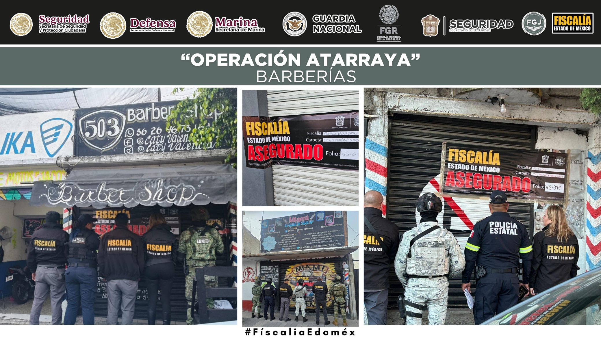 El viernes la Fiscalía del Estado de México desplegó acciones simultáneas del ‘Operativo Atarraya’ en 20 municipios, donde 312 establecimientos tipo “barberías o estéticas” fueron asegurados por supuestamente ser lugares donde se vende o distribuye droga.