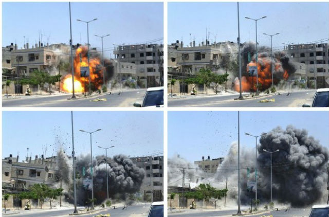 Previo al ataque el ejército israelí anunció el lanzamiento de dos bombas por lo que pidió a quienes se encontraban en su interior que lo desalojaran. El gobierno de Israel aseguró que en el edificio, conocido como Zafer 4, operaban combatientes del movimiento radical islámico palestino Hamas.