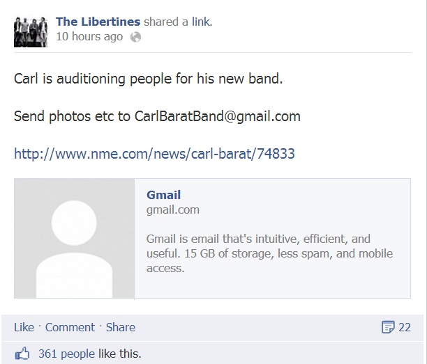 Así que ya saben, tienen la oportunidad de formar parte del grupo del mismísimo Carl Barât… ¿qué esperan para mandar sus datos por mail?