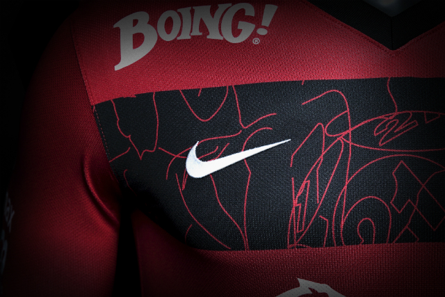 A diferencia de las camisetas del año pasado, estas nuevas cuentan con un cuello en “V” color negro y rojo (depende la versión) y una franja en el pecho.