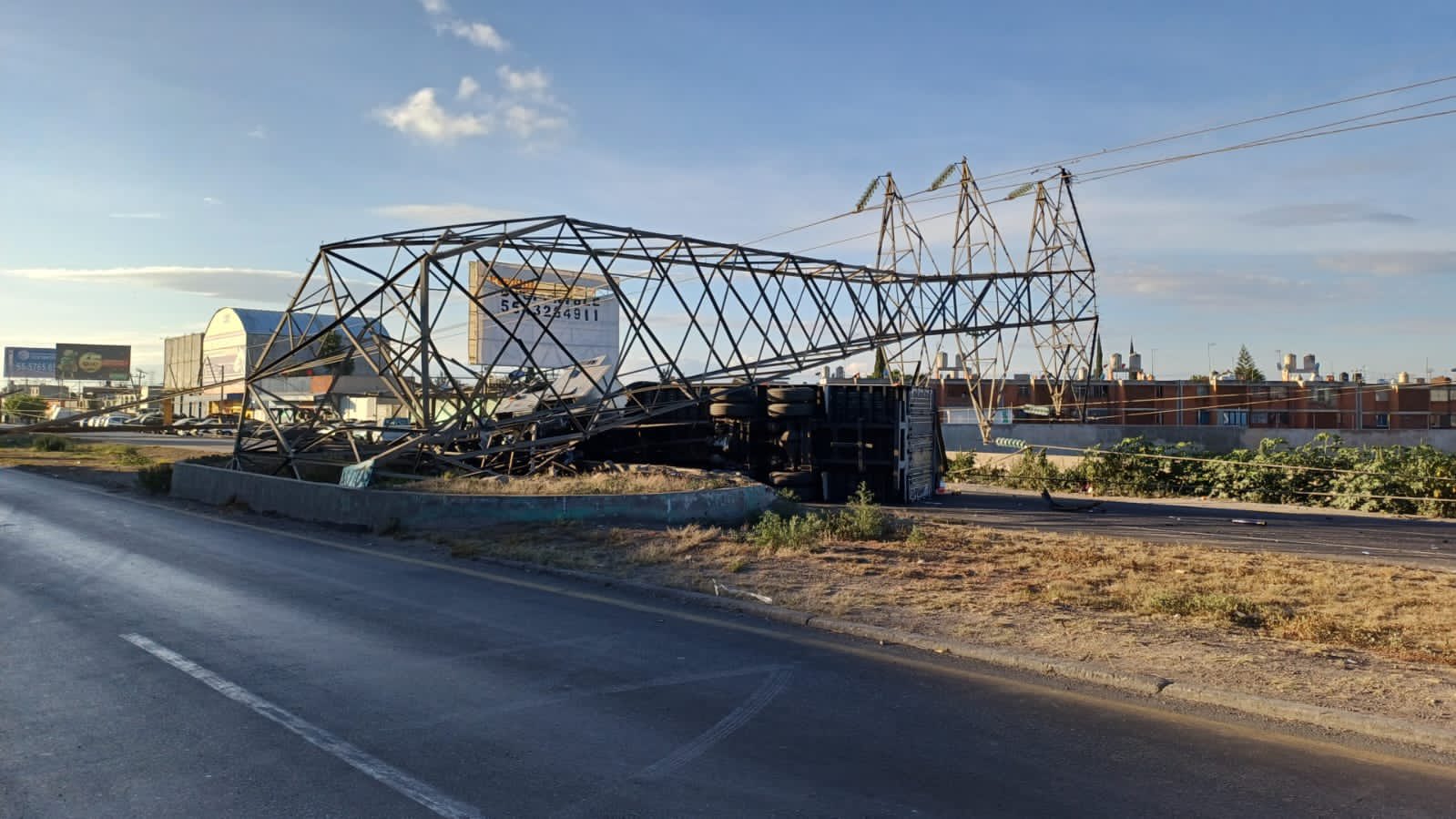 El conductor no pudo frenar el pesado transporte y se volcó, impactando con la enorme torre eléctrica. Todo esto sobre la carretera Texcoco-Lechería, a la altura de la central de abastos de Ecatepec.