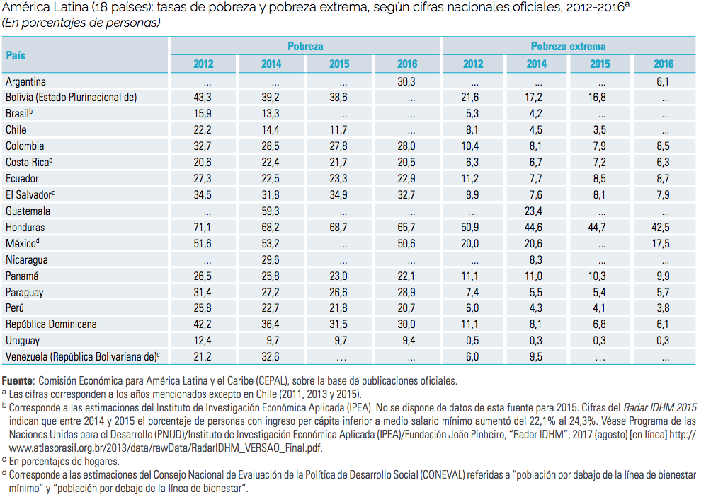 De acuerdo con el informe ‘Panorama Social de América Latina 2017′ de la Comisión Económica para América Latina y el Caribe (CEPAL), hasta 2016 México ocupaba el segundo lugar en la lista de las mayores tasas de pobreza y pobreza extrema. Solo fue superado por Honduras.