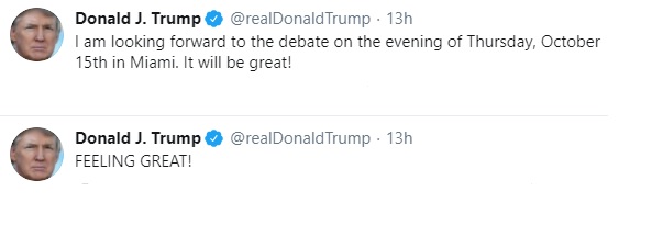 Eso fue el lunes. Ayer por la mañana, aseguró sentirse realmente bien y, pa’ pronto, señaló que está más que listo para el debate presidencial, el cual –si las cosas siguen bajo la inercia– debería realizarse el próximo jueves, en Florida.