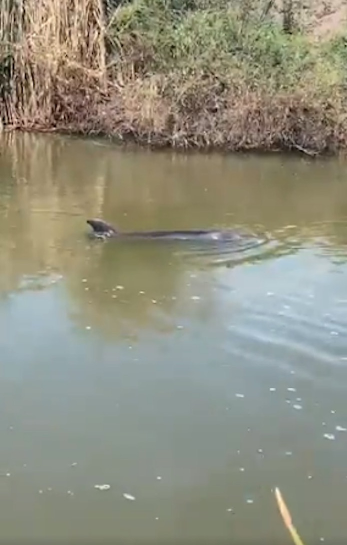 Ya fue rescatado y liberado 1 de 2 delfines que se encontraba atrapado en un canal de riego en Navolato, Sinaloa, cuya vida estaba en riesgo por la cantidad de cocodrilos que ahí habitan y por el bajo nivel del agua.