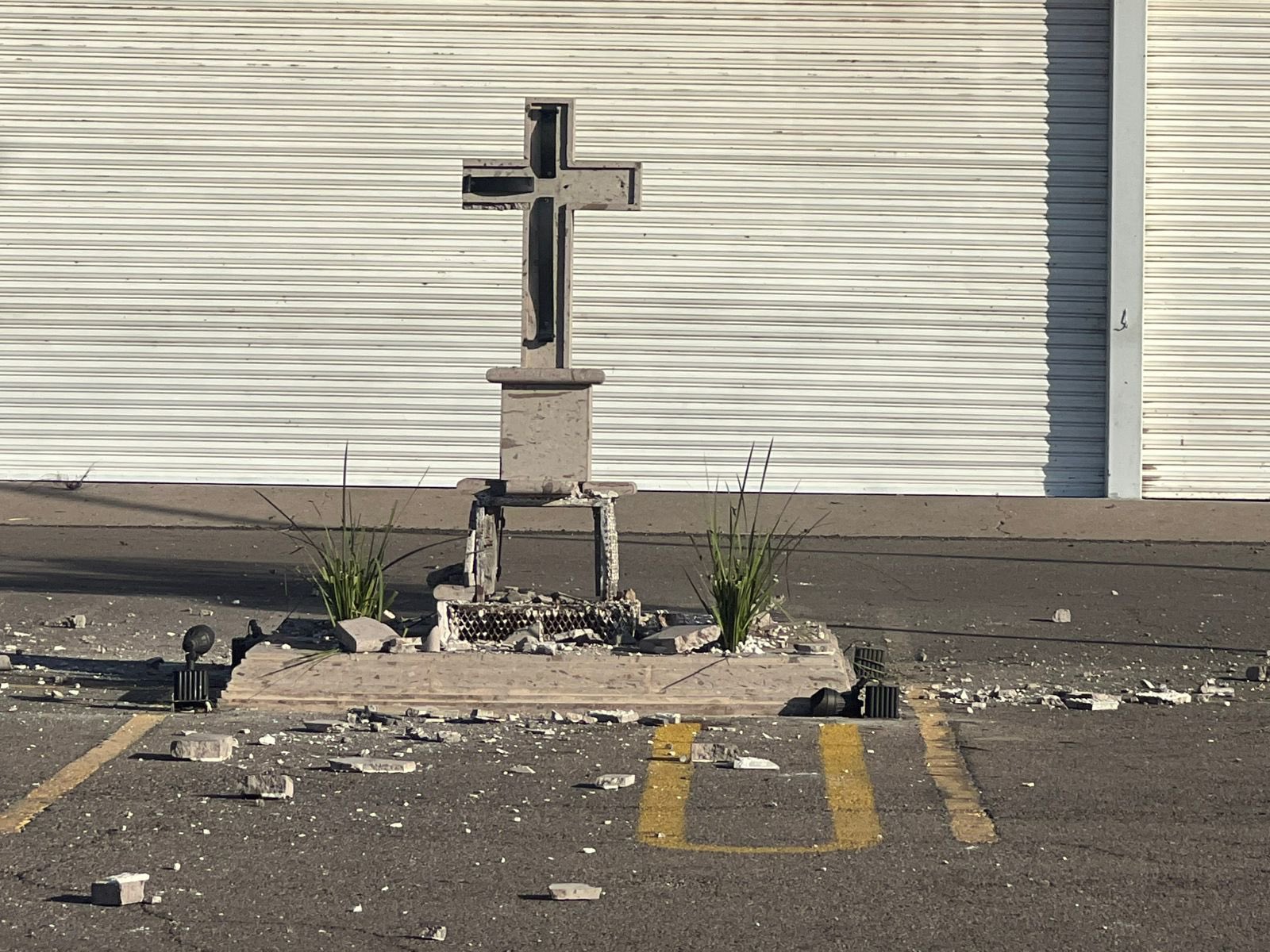 Los enfrentamientos entre grupos delictivos en Sinaloa no se detienen. Está vez una explosión destruyó el monumento funerario en memoria de Edgar Guzmán, hijo de Joaquín ‘El Chapo’ Guzmán, ubicado en un estacionamiento de un centro comercial en el Desarrollo Urbano Tres Ríos.