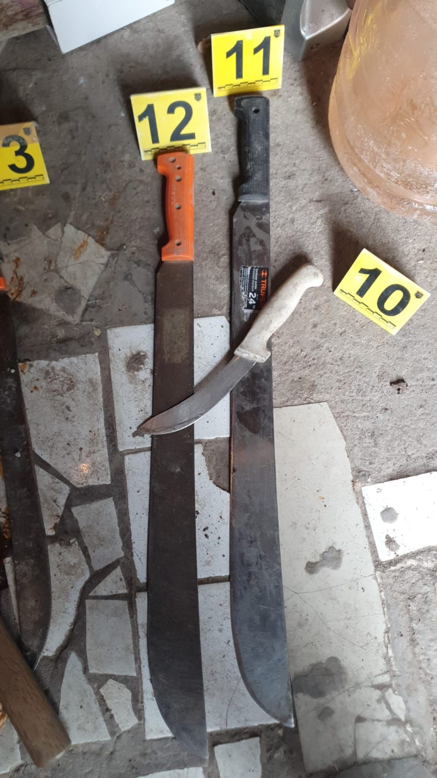 Ahí encontraron cinco machetes, dos armas punzocortantes, una motosierra, un marro y otros indicios. Esto además de varios segmentos óseos.