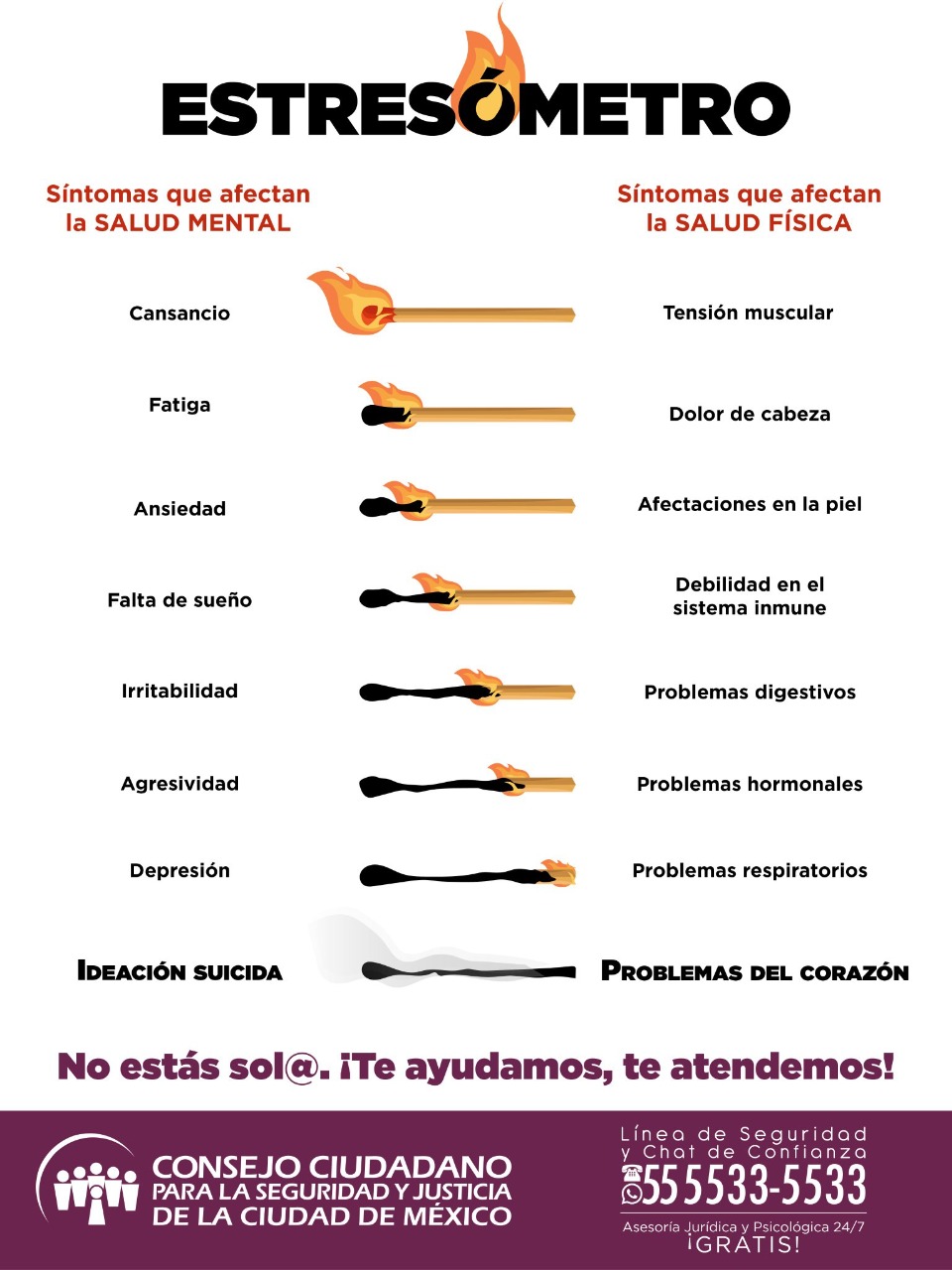 Recientemente el Consejo Ciudadano para la Seguridad y Justicia de la Ciudad de México publicó un estresómetro, una medida para detectar afectaciones progresivas en la salud física y mental a consecuencia del estrés.