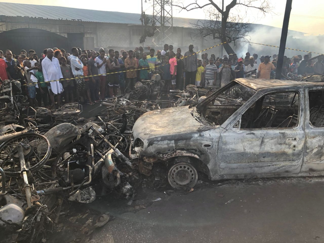 🇸🇱 The aftermath of an explosion at a petrol station in #SierraLeone‘s capital #Freetown, in which at least 92 people were killed, the vice president said. According to witnesses, the accident happened when a vehicle caught fire after a road accident. pic.twitter.com/kbIU5cmcW6
