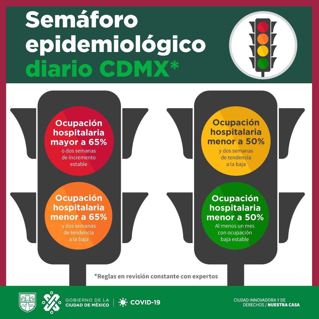 De acuerdo con el gobierno de la CDMX, para que el semáforo esté en Verde la ocupación hospitalaria tiene que ser menor a 50%… y no nomás basta con eso, sino que esa ocupación sea estable por un mes.