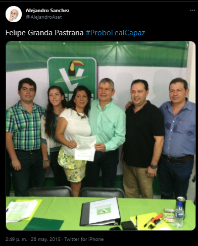 Tuit del 2015 cuando Felipe Granda Pastrana pertenecía al Partido Verde