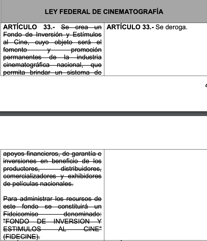 Como mencionamos, esta iniciativa le pega al Fondo de Inversión y Estímulos al Cine (FIDECINE) —terminando de manera total el apoyo al rubro independiente y a cientos de trabajadores del cine.