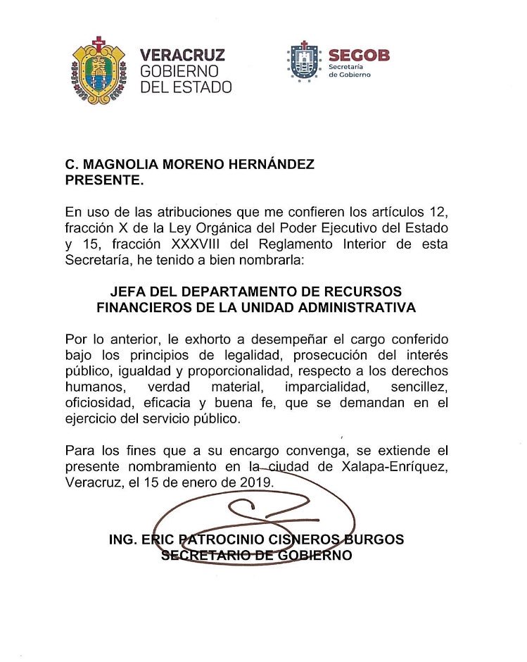 Por si andaban con el pendiente, nuestra funcionaria #top recibió su cargo el pasado 15 de enero cuando el secretario de Gobierno le dio oficialmente la chamba de jefa de departamento.