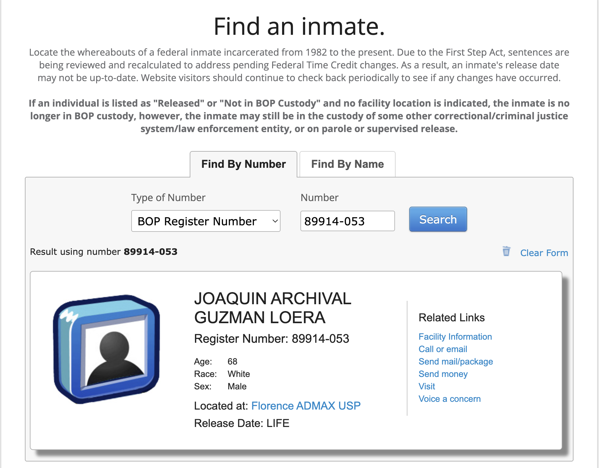 Si bien, se desconoce la fecha exacta en la que García Luna fue trasladado a Florence, su cambio de prisión ya aparece en la base de datos del Buró Federal de Prisiones de Estados Unidos (BOP, por sus siglas en inglés).