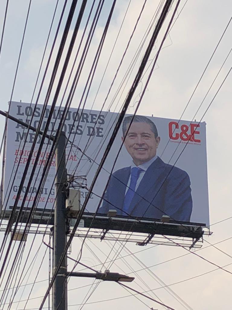 Pero la cosa no acabó ahí: recientemente se viralizaron varias fotos que muestran un espectacular colocado en la lateral de Periférico y donde una revista coloca a Giovani Gutiérrez como uno de los mejores alcaldes de México. ¿Por?