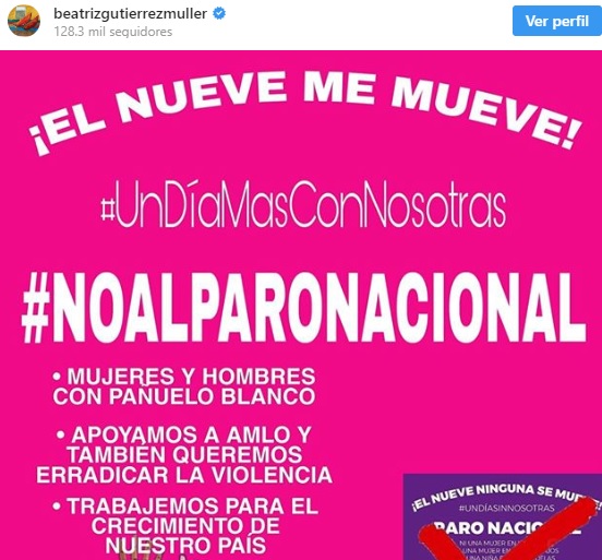 Y justo cuando ya le estaban lloviendo críticas en su milpita, Gutiérrez Müller sacó otro mensaje… esta vez para descontento y también desconcierto de las mujeres que llaman a dejar semivacíos todos los espacios el próximo 9 de marzo, Día Internacional de la Mujer: #NoAlParoNacional, se puede ver en la imagen que compartió.