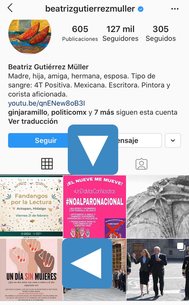 La belleza de la ambivalencia ideológica de Gutiérrez Müller se puede ver en todo su esplendor en la cuenta Instagram de la no primera dama, ya que ahí se pueden ver juntitas las dos imágenes llamando a movilizarse/no movilizarse.