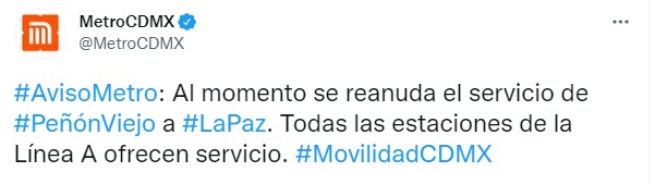 Por medio de sus redes sociales, el Metro informó que el servicio de la Línea A sigue en pausa. No en todas las estaciones, pero sí en varias. “Nomás” de Peñón Viejo a terminal La Paz. De estación Guelatao a Pantitlán el servicio es regular.