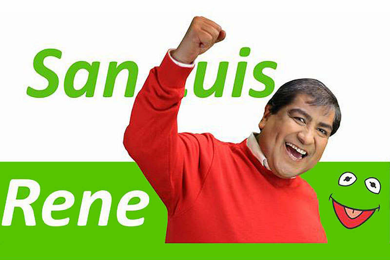 El caso es que aunque no usa el nombre oficial de la creación de Jim Henson, el candidato del PRI a diputado local por el VII Distrito de San Luis Potosí, René Díaz González, será objeto de una investigación por parte del área de combate a la piratería de Walt Disney Group México, esto por andar usando sin permiso la imagen de su tocayo de trapo.