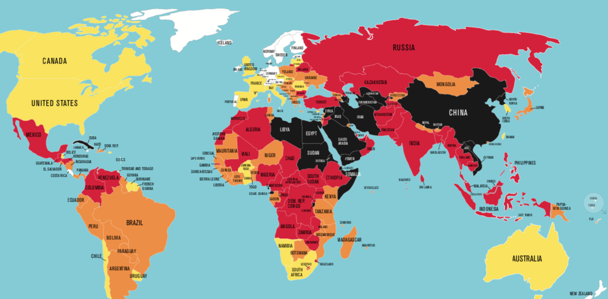 ¿La razón? Sólo en el 24% de los países que integran esta lista tienen una situación “buena” con respecto a las garantías para los reporteros y periodistas.