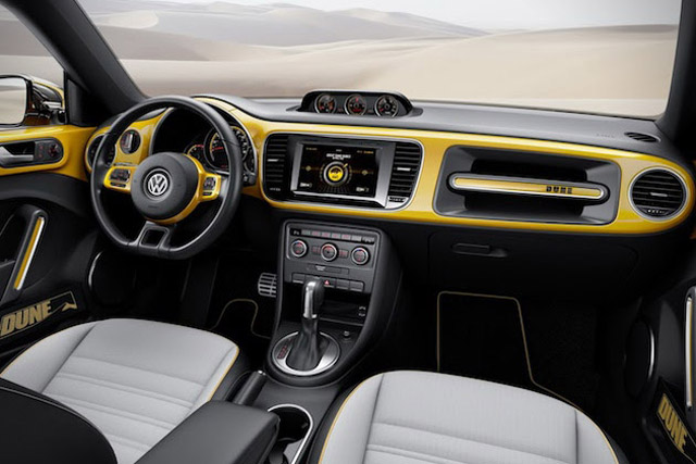 Con un acabado metálico, (llamado Arizona) el Dune incorpora un look más agresivo en comparación al resto de los Beetles (probablemente VW quiere erradicar el estigma de que este es un coche “femenino), con un dos nuevos alerones en la parte trasera, así como un nuevo diseño de interiores cien por ciento deportivo.