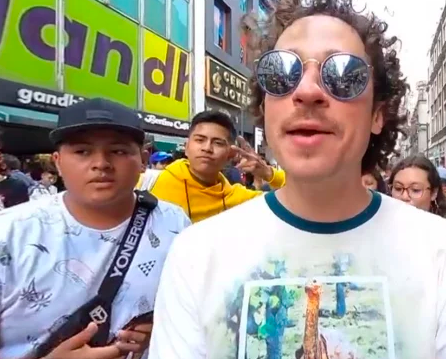En el material titulado “Un día entero conmigo en realidad virtual”, se puede observar a un hombre intentando grabar con una mochila y su teléfono celular bajo la falda de una joven, quien se encontraba escuchando atentamente al “youtuber” mientras platicaba con un organillero.