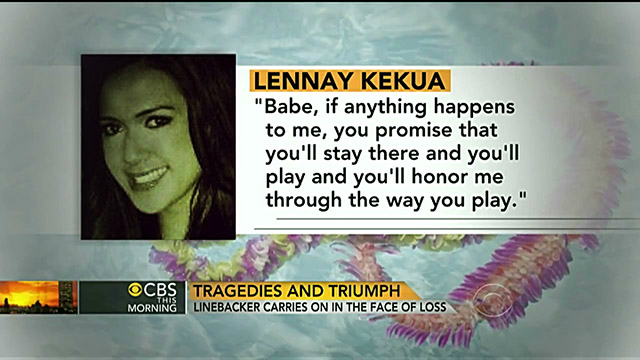 Todo comenzó la mañana del 12 de Septiembre cuando el Linebacker de la Universidad de Notre Dame Manti Te’o se enteró de la muerte de su abuela, sólo para que horas más tarde, también se le informara sobre la muerte de su novia, Lennay Kekua a causa de leucemia.