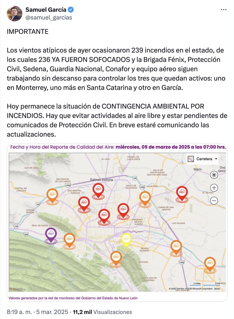 Incendios y purificadores de aire, las dos caras de Nuevo León