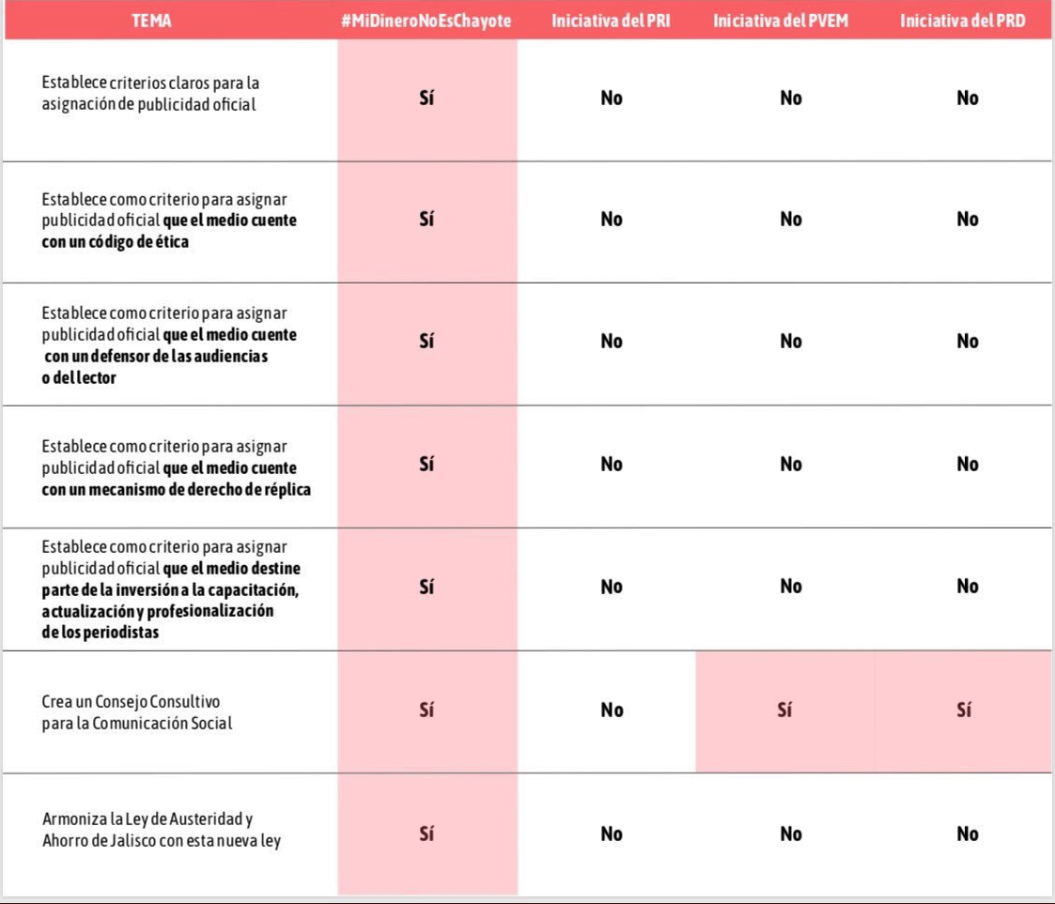 Todo lo anterior cuenta con el respaldo de organizaciones como la Asociación Mexicana de Derecho a la Información -Amedi Jalisco- y la organización Fundar.