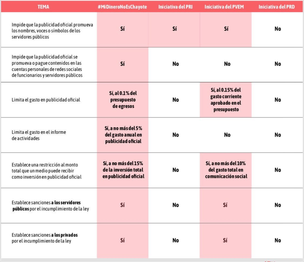 De la misma forma, se presentó una comparación entre los alcances de la iniciativa #MiDineroNoEsChayote y la #LeyChayote, iniciativa respaldada por el PRI, PVEM y la presentada por el PRD.