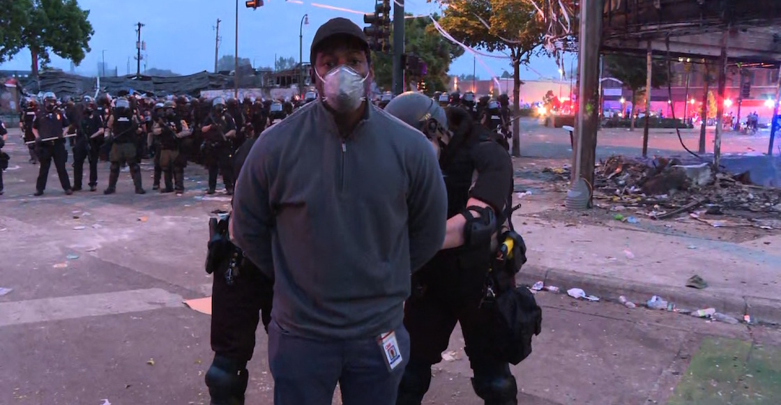 Se trata del corresponsal Omar Jiménez, quien fue detenido —con esposas y todo— a pesar de haberse identificado claramente como periodista.