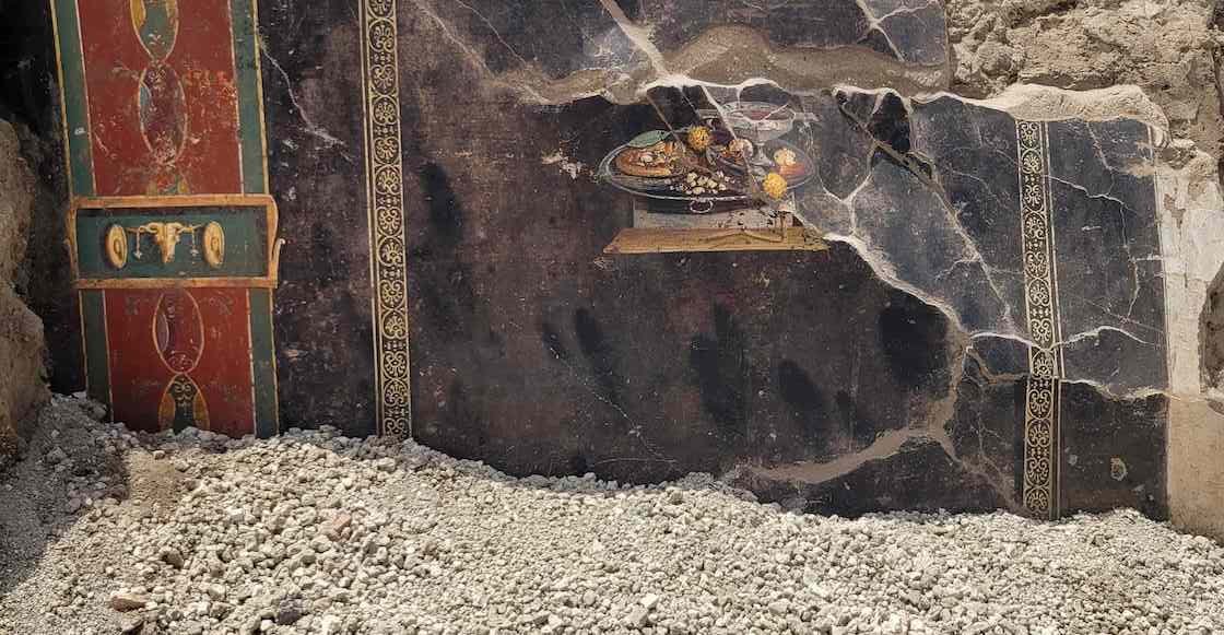 Mural de la pizza encontrado en Pompeya // Foto: Gennaro Sangiuliano, ministro de Cultura en Italia