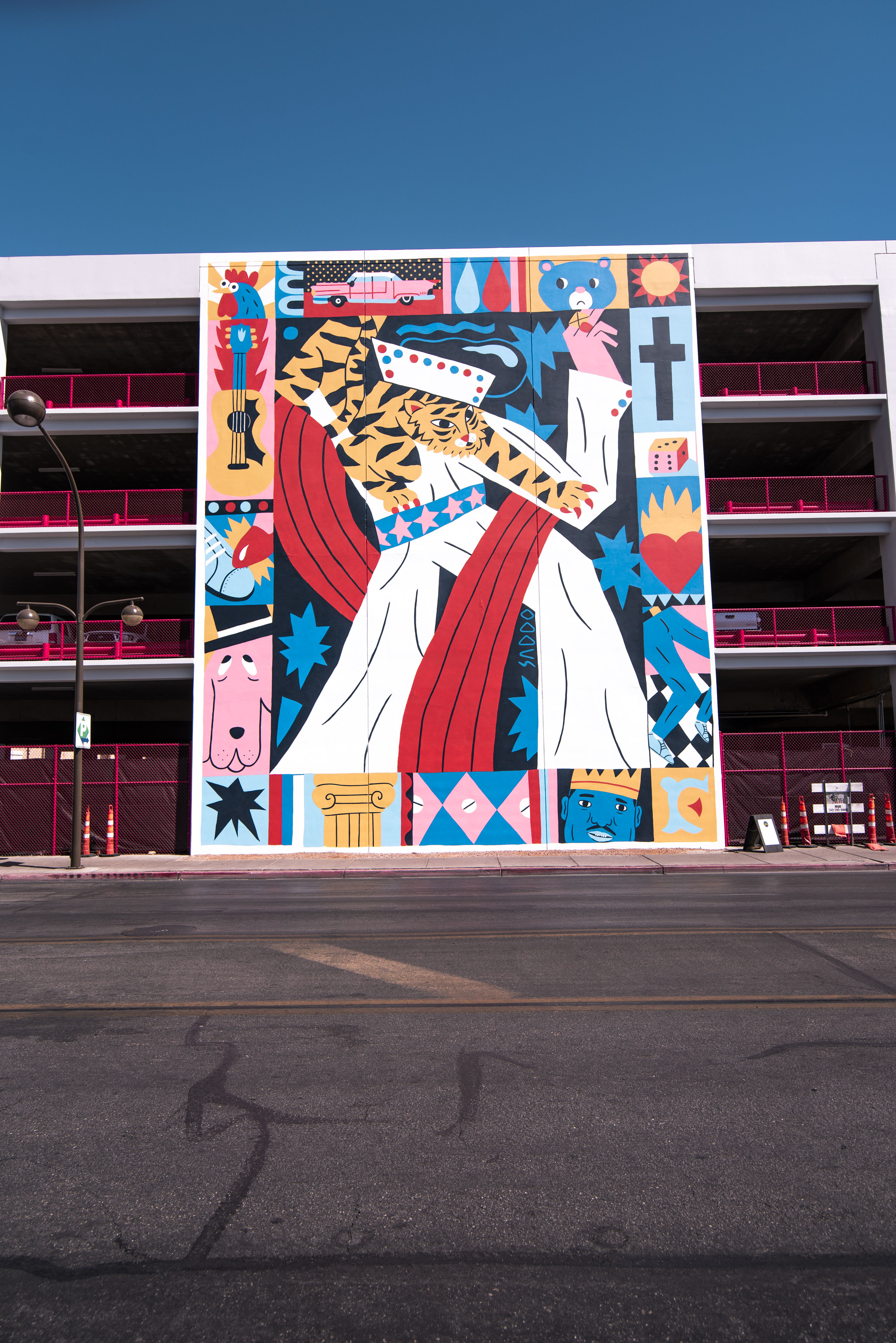 En realidad este no es el nombre del artista rumano, sino el seudónimo de Raul Oprea, quien es un pintor, muralista e ilustrador comtemporáneo que exhibió su trabajo en galerías alrededor del mundo. Conforme los años su trabajo ha ido evolucionando, en ellos ha plasmado un poco de surrealismo pop, mitología y religión. De ahí es que ha dado vida a una enorme pared de otro estacionamiento un mural en el que aparece un Elvis Presley —como oda a Las Vegas— con un leopardo sobre él. Como marco aplica diversos elementos de la cultura pop pero también característicos de esta ciudad.