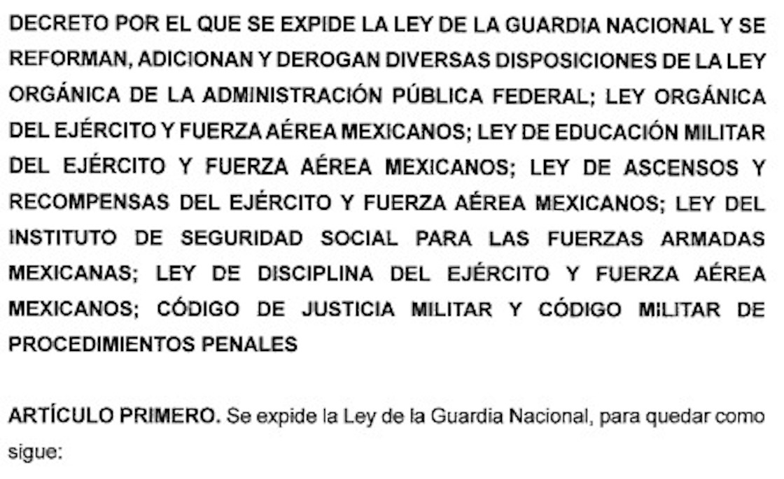 Como se menciona en la iniciativa de Claudia Sheinbaum, la fracción VI del artículo 9 de la Ley de la Guardia Nacional indica que es atribución y obligación de esta dependencia de seguridad: “Llevar a cabo operaciones encubiertas y de usuarios simulados para la investigación preventiva del delito; asimismo, realizar bajo el mando y conducción del Ministerio Público, la investigación que resulte de esas operaciones en términos de las disposiciones aplicables”.