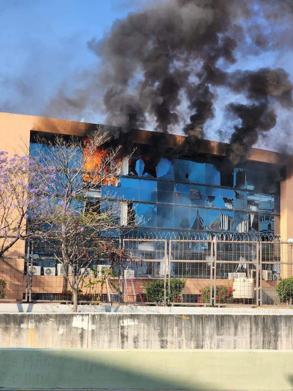 Después de que los estudiantes normalistas incendiaran edificios, el palacio de gobierno, y al menos ocho coches en Chilpancingo, bomberos locales llegaron al lugar y se pusieron a trabajar para apagar las llamas provocadas por bombas molotov.