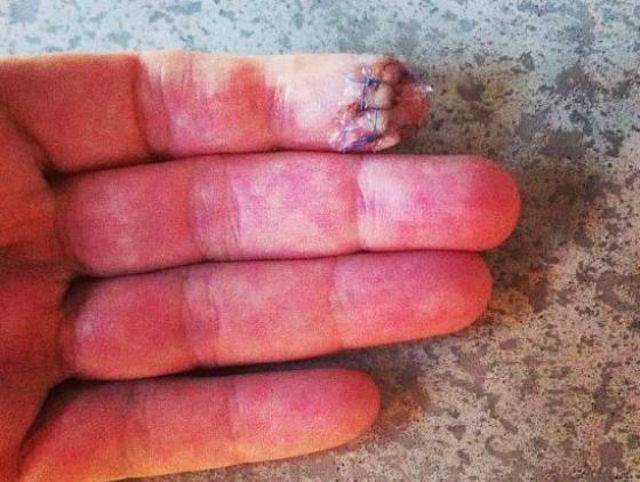 Bueno, antes de enseñarles la imagen que la misma Annika fotografió de cómo quedó su dedo, debemos advertirles que si son muuuy sensibles no la vean.