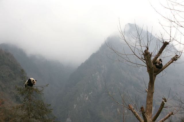 Entonces a lo lejos veo a uno de ellos. O mejor dicho de ellas. No sé si es Xin Xin o Shuan Shuan, pero no me importa, me basta verlo dormido sobre un tronco para sentirme afortunado de poder ver a una de estas bellas criaturas con mis propios ojos.