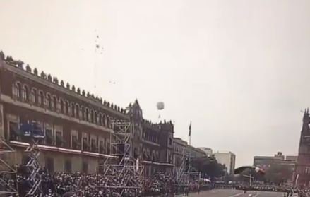 Un video del portal Milenio, muestra el momento en el que varios paracaidistas comienzan a arribar a la plancha del Zócalo de la ciudad. Sin embargo, se puede ver cómo uno no puede hacerlo y va a caer atrás de Palacio Nacional. De acuerdo con los primeros informes citados por el mismo medio, el elemento de la Semar identificado como Valente Mateo Hernández, segundo maestre de Infantería de fuerzas especiales, cayó en la calle Corregidora, en el Centro de la CDMX.