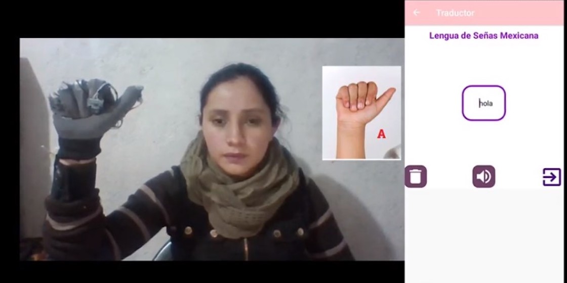 Este par de guantes con sensores detecta la Lengua de Señas Mexicana, las envía a un teléfono celular con sistema operativo Android y con la aplicación Traductor, y muestra una por una las letras hasta formar una palabra, la cual también puede escucharse.