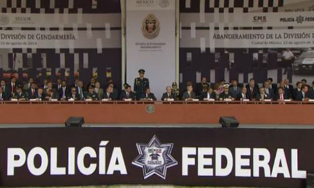 Después de la sesión del Consejo Nacional de Seguridad el presidente Enrique Peña Nieto encabezó la ceremonia del abanderamiento de la nueva fuerza de seguridad, a quienes pidió dar resultados y construir una relación de respeto y confianza para lograr un México en paz.