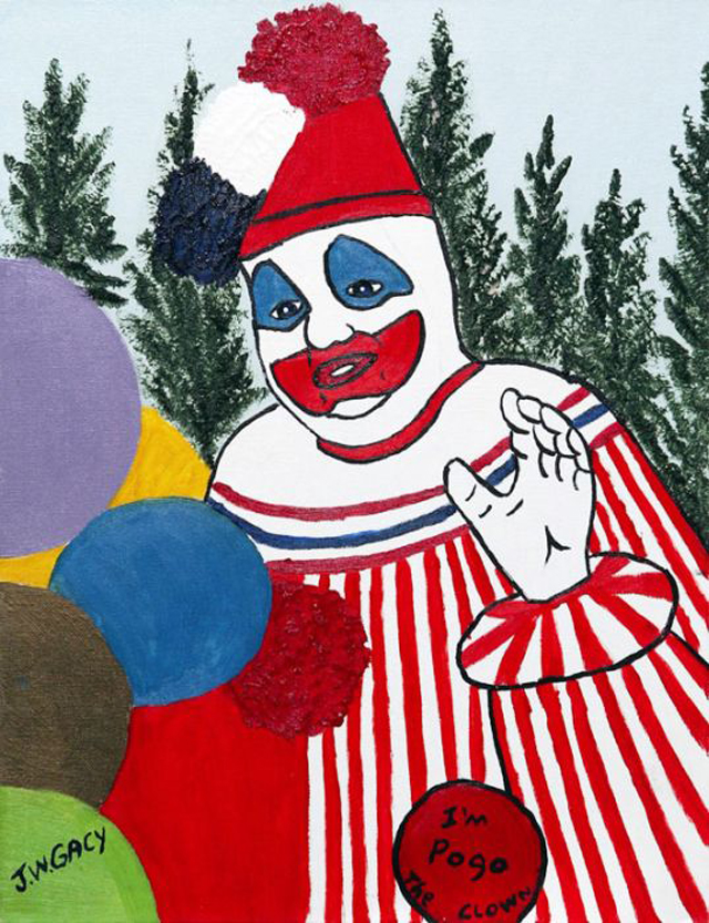 John Wayne Gacy: Acusado de matar a un mínimo de 33 niños y adolescentes, Gacy se disfrazaba de payaso para luego salir a violar y asesinar menores. En muchos de sus cuadros aparecen los siete enanos de Blancanieves, lo que podría ser considero como una tétrica representación de sus personalidades múltiples y sus padecimientos esquizoides.
