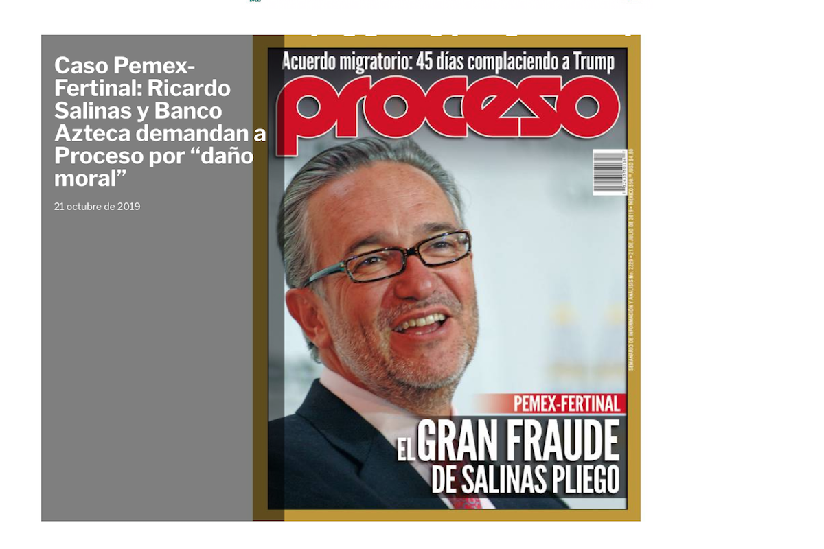 .@RicardoBSalinas y @BancoAzteca demandan por “daño moral” a @revistaproceso, dos directivos y un reportero por las investigaciones donde señalan presuntos vínculos del empresario con la compraventa a sobreprecio de Fertinal por parte de @Pemex. https://t.co/dj0LAfgQ5s