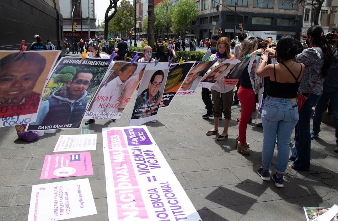 “Mujeres de la colectiva Frente Nacional Mujeres y Amor no es violencia hicieron tendedero de Deudores alimentarios frente a la SCJN (marzo 2022)”. Foto: Andrea Murcia-Cuartoscuro.