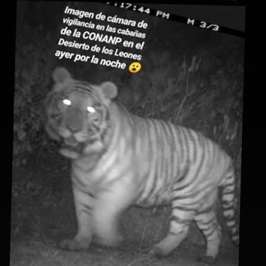 Seguramente ya leyeron por ahí en redes sociales que hay un tigre suelto en el Desierto de los Leones, que está alimentándose de perros, que los guardabosques están impidiendo el paso de personas por seguridad y que ya hasta hay una foto capturada por una cámara de seguridad.